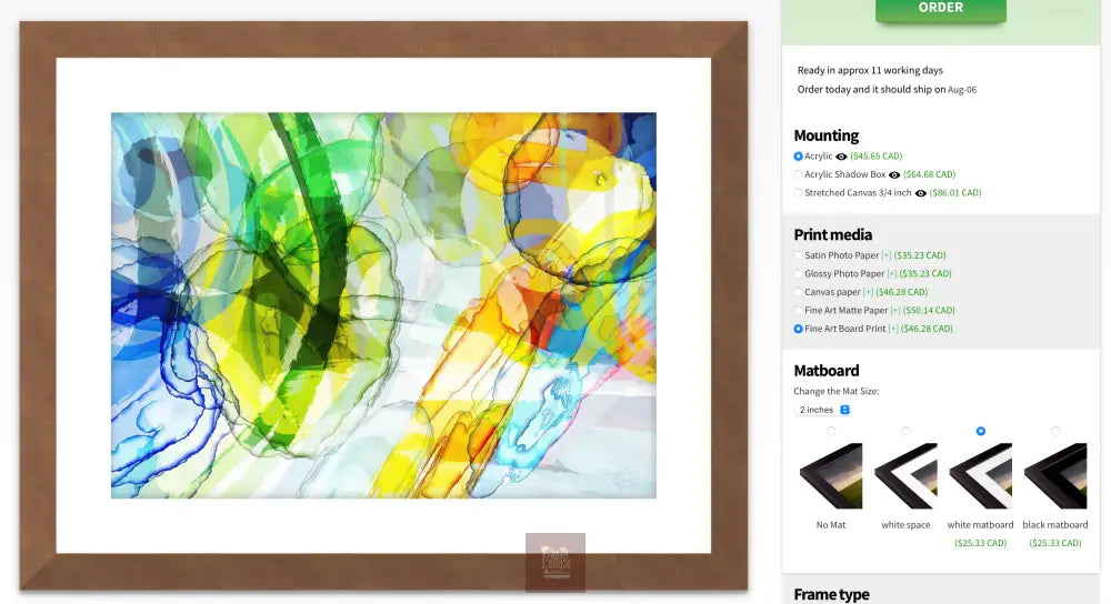 ----Giclee print on museum quality 410gsm polycotton canvas.